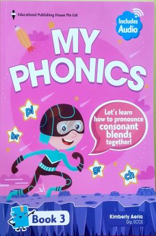 The My Phonics Book series is designed to improve your child's reading and spelling skills. With the audio recording provided, your child will be introduced  to the accurate pronounciation of letter sounds and blends in the English language. Through repetition and guided activities , your child will find phonics fun and easy to learn.