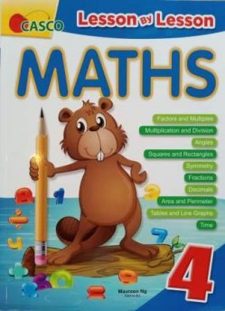 Lesson By Lesson Maths (Primary 4) Factors & Multiples, Multiplication & Devision, Angles, Squares & Rectangles, Symmetry, Fractions, Decimals, Area & Perimeter, Tables & Line Graphs, and Time.
